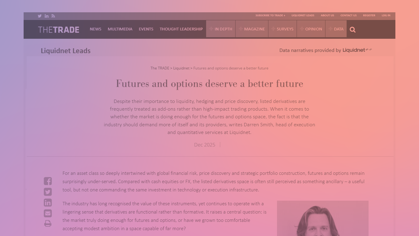 Building on decades of expertise and development, our Listed Derivatives service combines Liquidnet’s technological edge with a long history of operational excellence to create a trusted, evolutionary environment consistent with our Members’ needs.